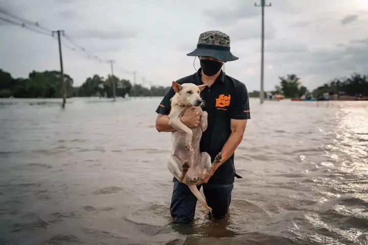 Chaque année, la mousson en Thaïlande provoque des inondations importantes dans de nombreuses régions. Dans ces contextes, Soi Dog est mobilisée pour fournir de la nourriture, des soins et une assistance d’urgence aux animaux en détresse.