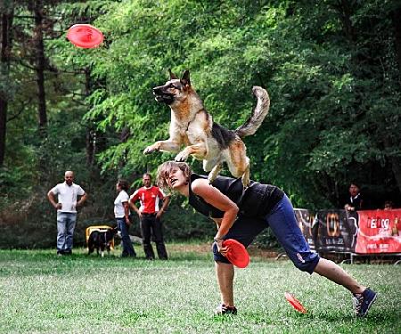 - Frisbee (disc dog) : figures et sauts avec un frisbee